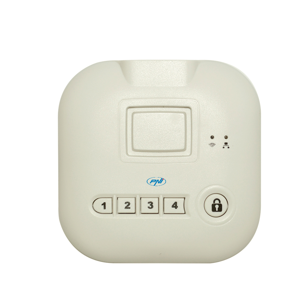 Unitatea centrala care se conecteaza prin cablu la router-ul din casa este „creierul” acestui sistem de alarma si automatizare. Ea coordoneaza activitatea tuturor senzorilor, releelor si receptorilor. Are o sirena integrata de 110dB, poate fi alimentata atat prin baterii (4 x AAA) cat si prin adaptor de alimentare (inclus) si are o tastatura formata din 4 taste numerice prin care puteti arma / dezarma sistemul. Sistemul poate fi armat/dezarmat si de la distanta din aplicatie.
