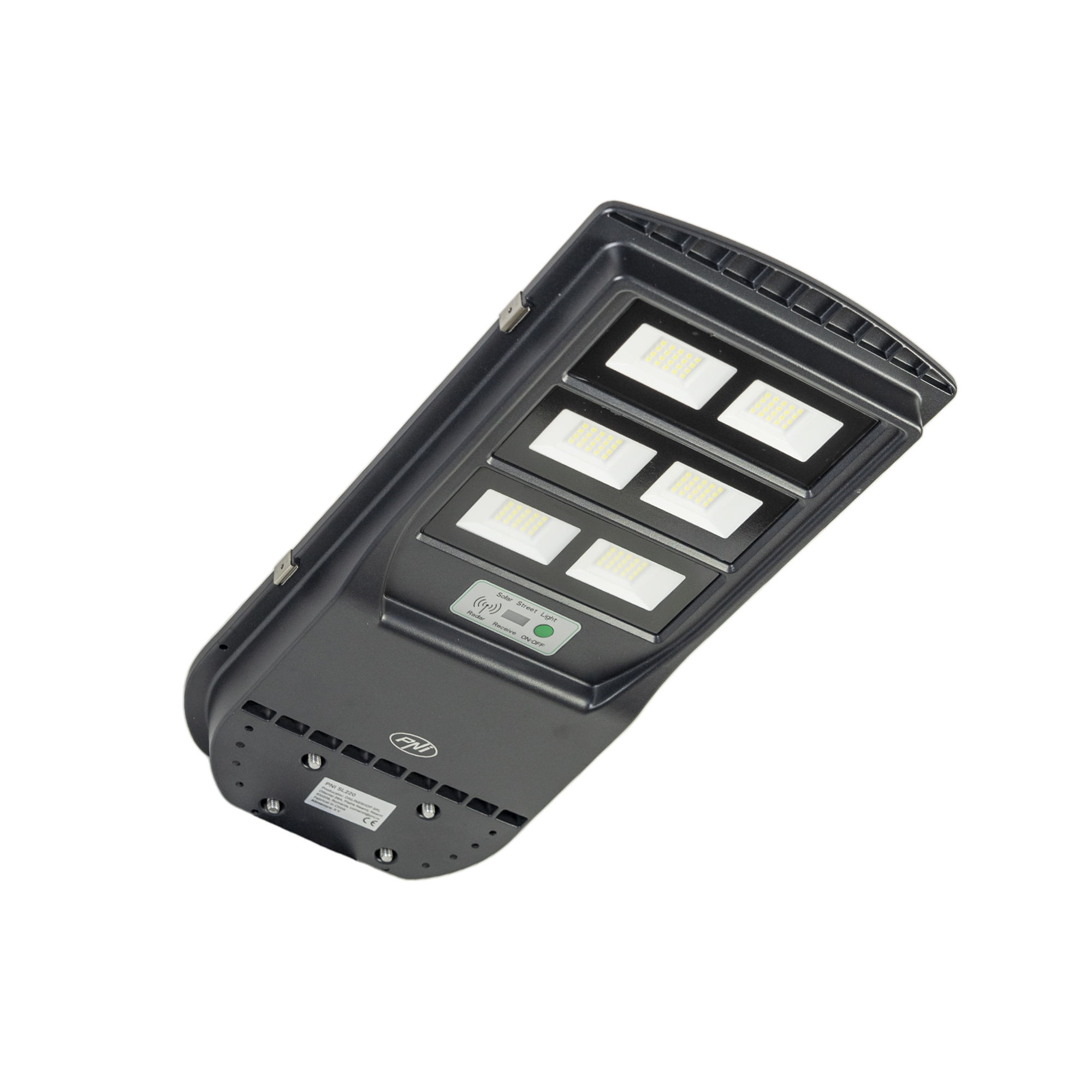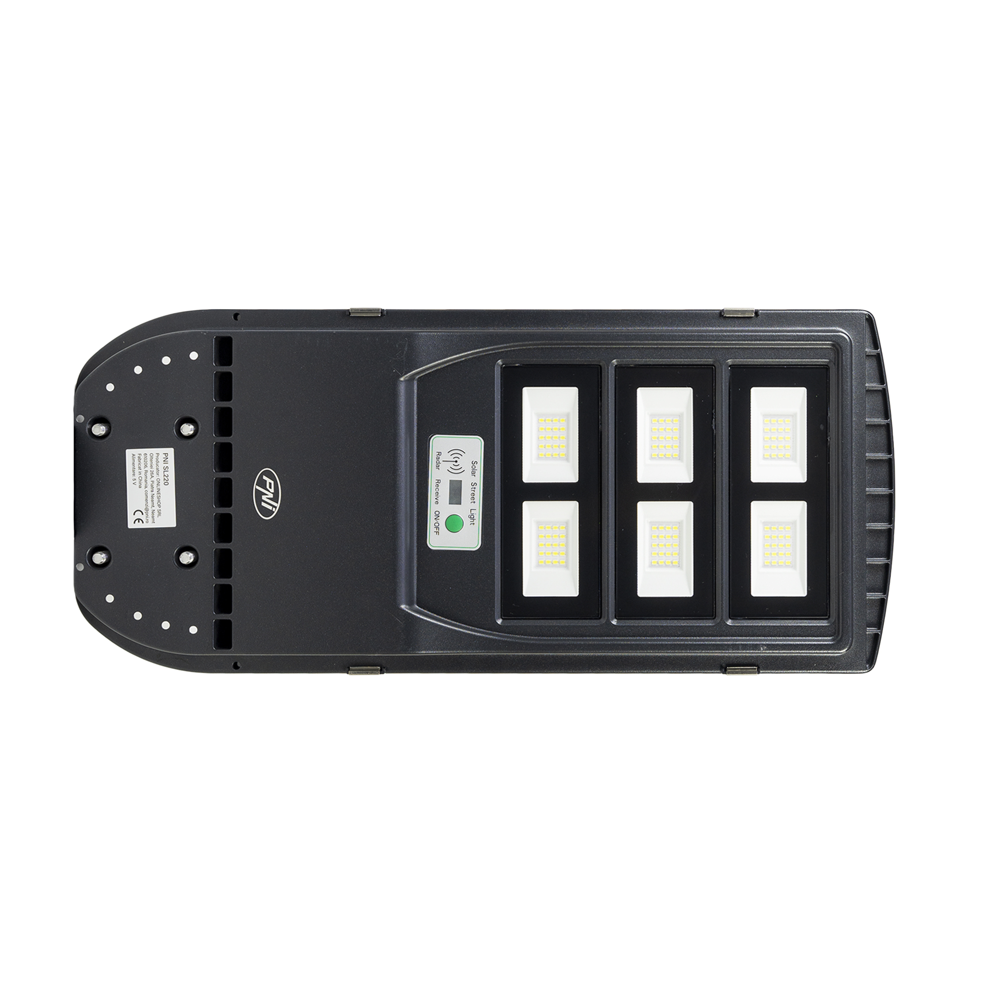 Corpuri de iluminat de vanzare la subpret, Lampa de iluminat stradal PNI SL220 13W, cu panou solar incorporat 15W, 6500K, 1700lm, 3 x acumulator 15Ah incorporat, senzor de miscare cu microunde.