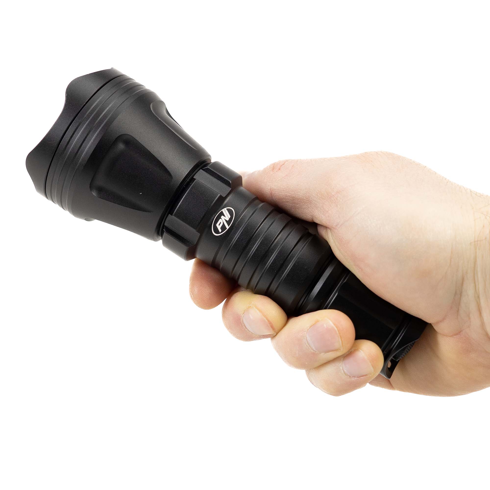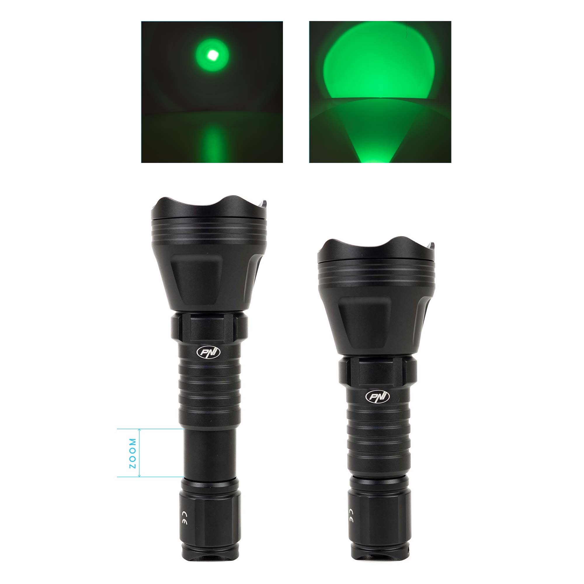 Lanterne de vanzare la subpret, Lanterna PNI Adventure FBG158 cu LED, lumina verde, distanta 650 m, functie zoom si dimming, acumulator 18650 3000mAh si incarcator inclus, IP68, negru.