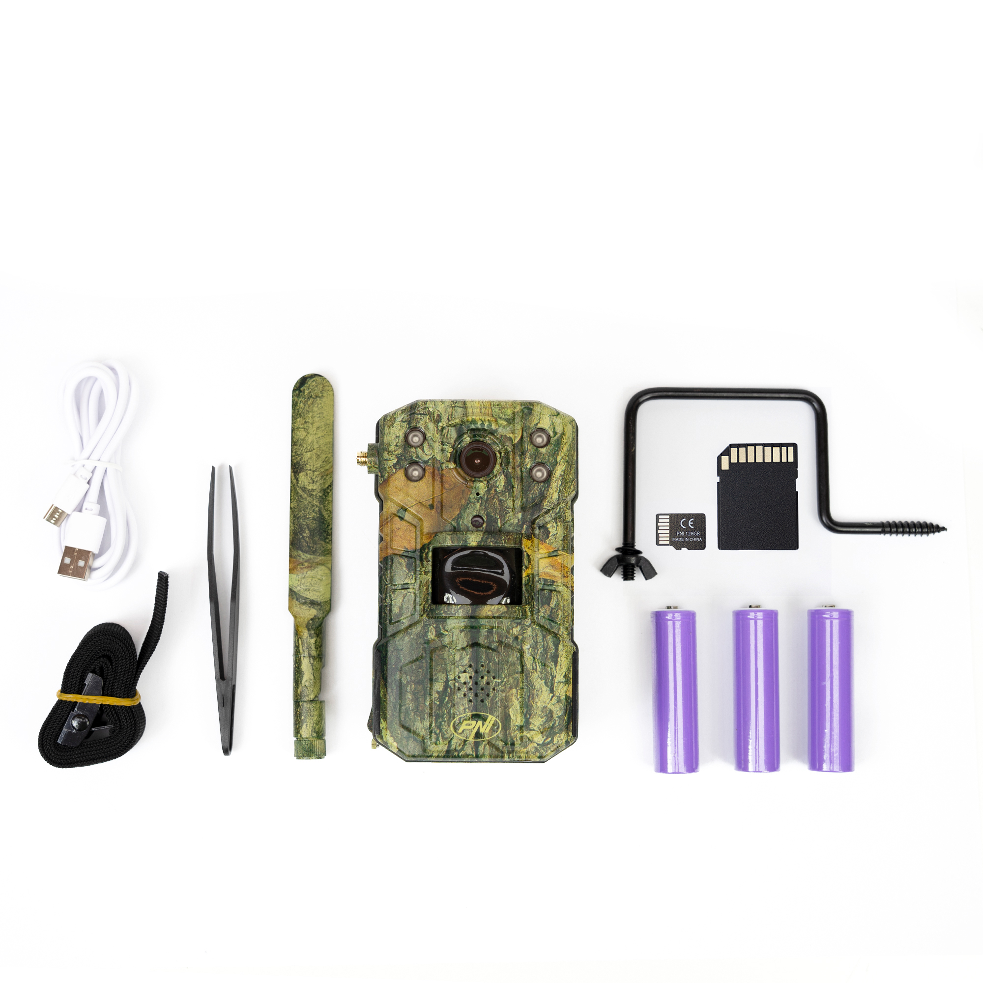 Vanatoare de vanzare la subpret, Pachet Camera vanatoare PNI Hunting 250C cu Internet 4G LTE duplex + Card de memorie MicroSD PNI 128GB cu adaptor SD.