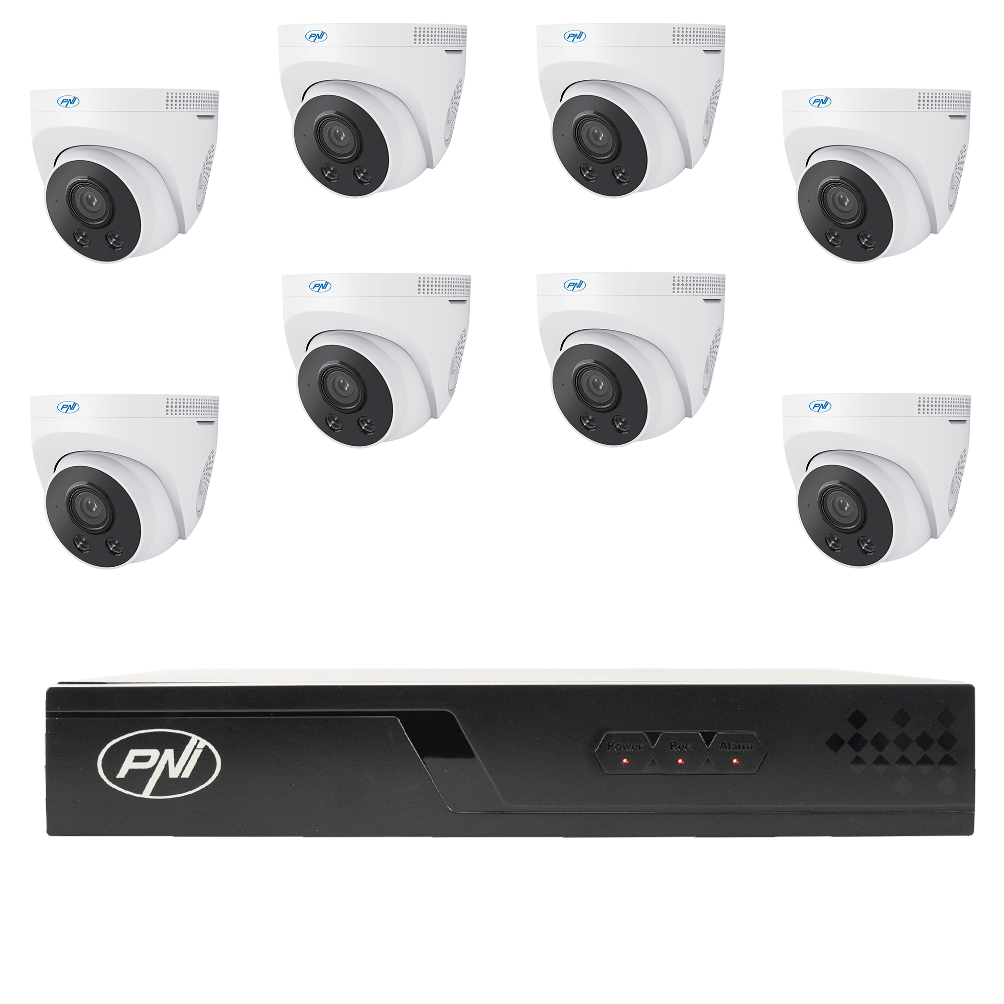 Sisteme DVR si NVR de vanzare la subpret, Pachet supraveghere video NVR POE PNI House IP716J, 8 camere PNI IP505J, 5MP si cabluri UTP CAT6 20 metri incluse.