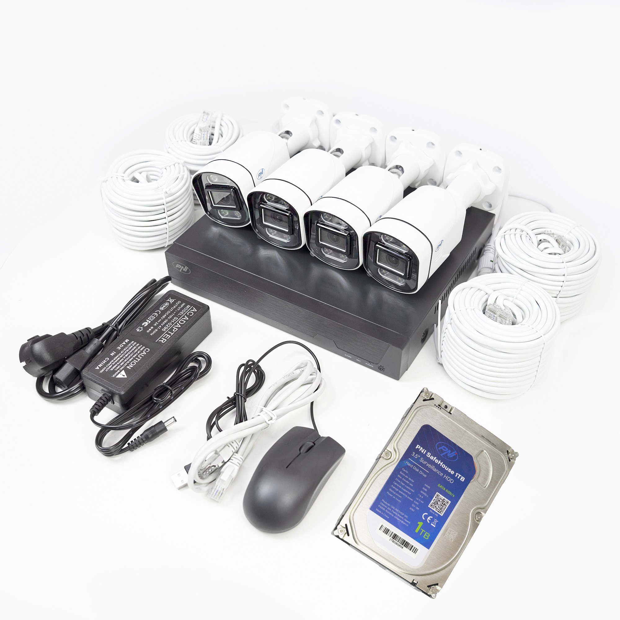 Sisteme DVR si NVR de vanzare la subpret, Pachet supraveghere video POE PNI House IPMAX POE 5, NVR, 4 camere cu IP 5MP si HDD PNI SafeHouse 1TB inclus.