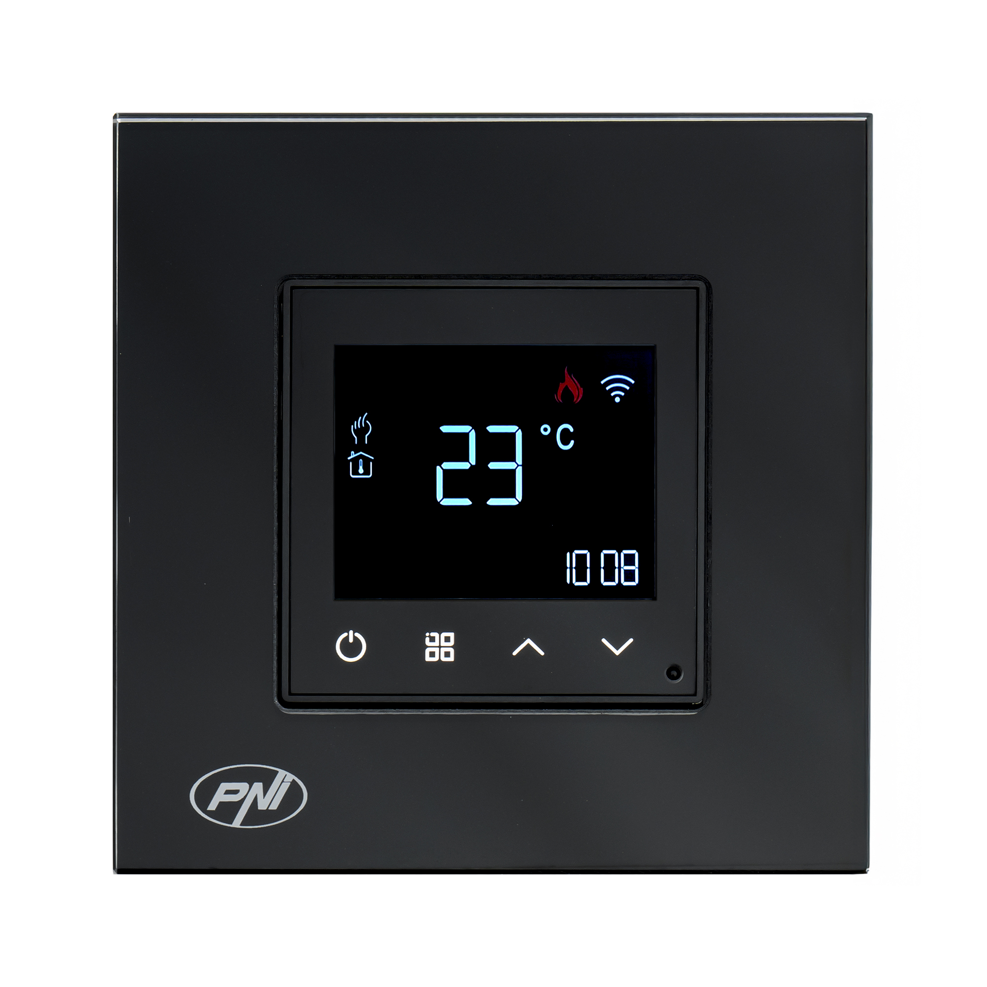 Termostate de vanzare la subpret, Termostat inteligent PNI CT26B WiFi incalzire in pardoseala electrica sau grup pompare, senzor pardoseala inclus, 10A, montaj incastrat, control din aplicatia Tuya Smart, programare zilnica, mod manual/automat, tensiune iesire 230V 10A.