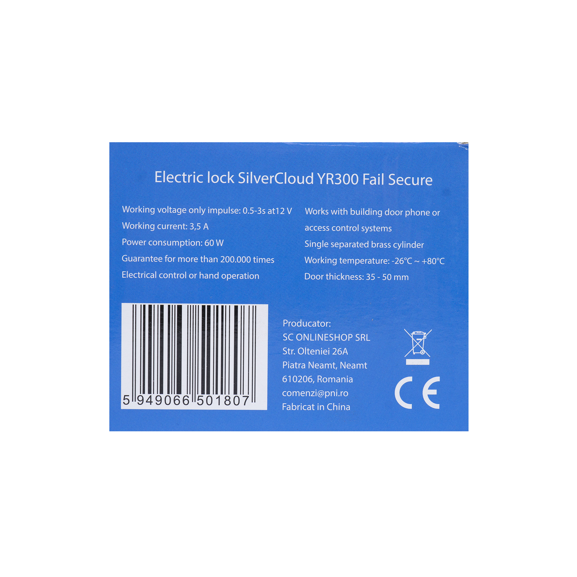 Yale si electromagneti de vanzare la subpret, Yala electromagnetica SilverCloud YR300 cu butuc, cu deschidere pe partea dreapta, Fail Secure NC.